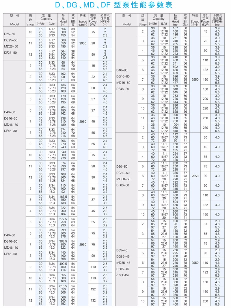 D型高吸程單吸多級臥式離心泵供輸送清水或物理及化學性質類似于清水的其他液體之用。介質溫度不大于80℃,它適用于礦山排水和工廠、城市建筑供水,遠距離輸水等場合。