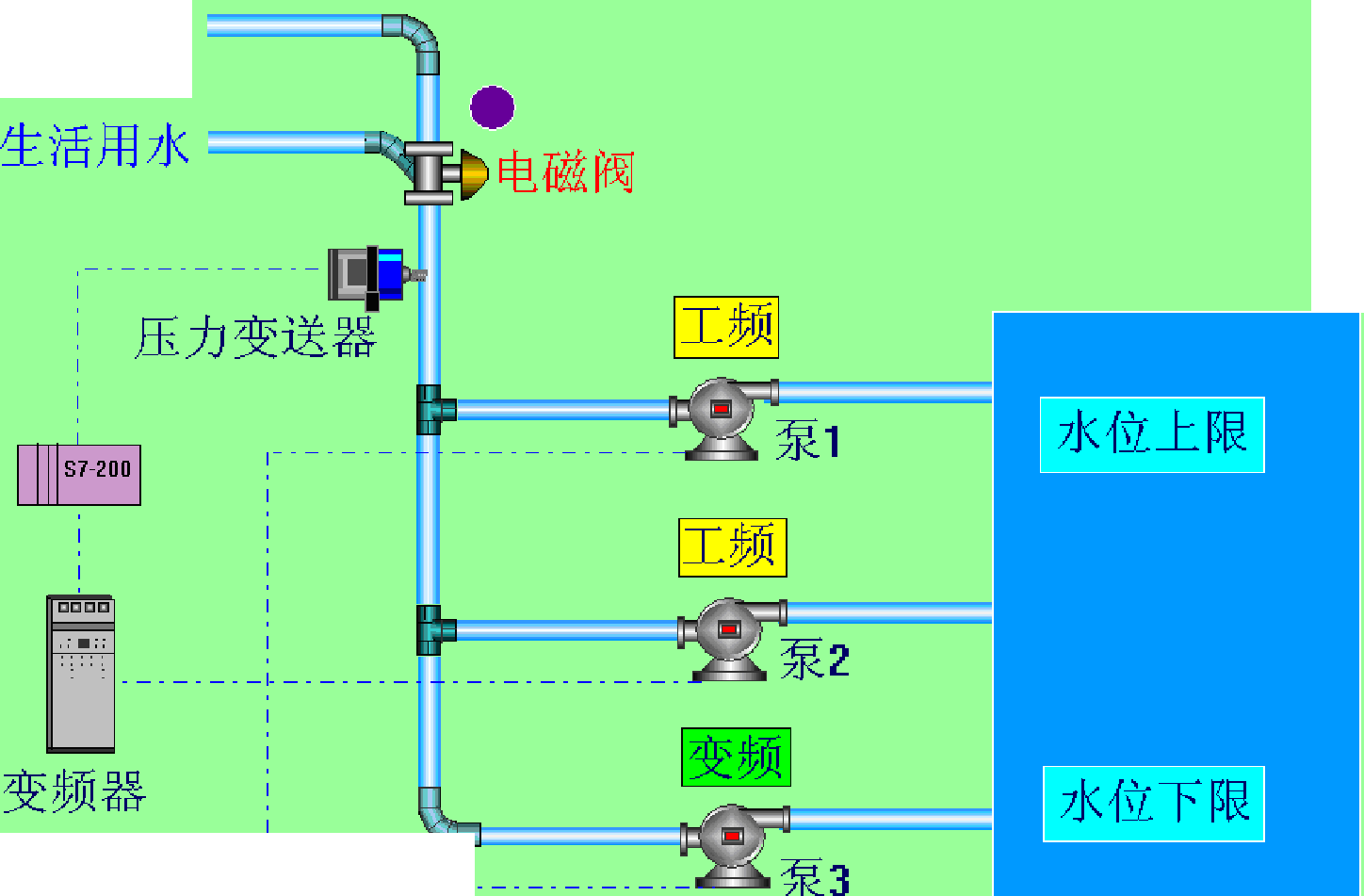 采用變頻器啟動(dòng)和停泵,無啟動(dòng)電流,延長水泵壽命